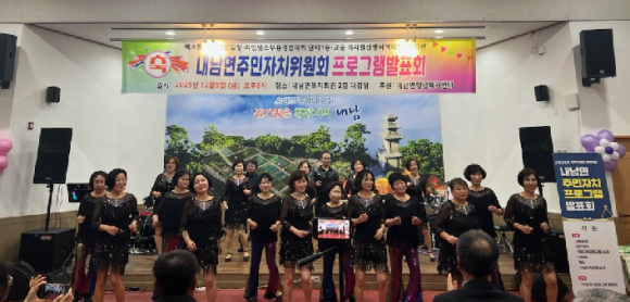 경주 내남 주민자치위원회가 지난 5일 내남면 복지회관 2층 강당에서 2025 내남면 주민자치 프로그램 발표회를 개최했다.