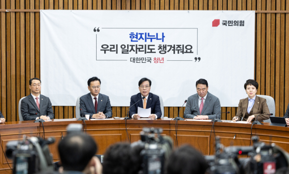 송언석 국힘 원내대표가 9일 서울 여의도 국회에서 열린 원내대책회의에서 모두발언하고 있다.뉴스1 |