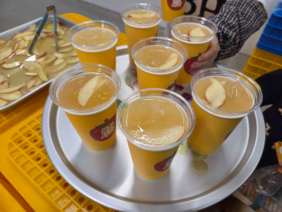 | 사과 개수 맞히기 게임. | 봉화군이 지난 6일~7일까지 서울 성수동 일원에서 ‘봉화사과 팝업스토어’를 운영, 주말 동안 총 2,000여 명이 방문해 높은 관심 속에 마무리 됐다. 팝업스토어는 2030세대가 주 방문층인 성수동의 특성을 반영해 단순 판매가 아닌 감성 체험 중심의 홍보형 행사로 기획된 점이 특징이다. 행사 첫날부터 전날 내린 눈으로 기온이 크게 떨어졌음에도 긴 대기줄이 형성 됐으며, 회차당 15명으로 관람 인원을 제한한 가운데도 예약·현장 접수가 조기 마감되는 등 뜨거운 반응을 얻었다. 봉화사과가 도시의 젊은 소비층에게 직접 다가가는 방식의 홍보로 전환한 첫 사례라는 점에서도 의미가 크다. ◇자연 감성 담은 공간 연출, 봉화 농산물 매력 시각화 입구에서 메인 행사장으로 이어지는 온실형 공간에는 실제 사과가 열린 사과나무를 배치하여 방문객들이 도심 한복판에서 농촌의 정취를 느낄 수 있도록 했다. 메인 전시장에는 봉화사과 전시존과 봉화에서 공수한 경운기를 활용한 감성 포토존을 조성해 방문객들의 큰 관심을 끌었다. 행사장 내부는 대기줄이 상시 형성될 만큼 높은 방문 밀도를 보였으며, 방문객들은 행사 공간 곳곳을 촬영해 개인 SNS에 자연스럽게 공유하는 모습도 확인되었다. 이러한 자발적 확산을 통해 행사 종료 후에도 온라인상에서 봉화 사과에 대한 관심이 이어지는 등 간접 홍보 효과가 나타났다. ◇재미와 맛 결합 체험 프로그램, 브랜드 경험 강화 행사장은 봉화사과의 맛과 특성을 직접 체험할 수 있는 다양한 게임형 미션으로 구성됐다. •철가방 사과 개수 맞히기 정답자에게 봉화사과로 만든 탄산음료 ‘애사비’를 제공해 사과의 당도와 풍미를 직접 느낄 수 있게 했다. 특히 애사비는 현장에서만 제공되는 지역 특화 상품으로, 방문객들로부터 “사과 향이 진하고 개성 있다”는 긍정적인 반응을 얻었다. •봉화사과 찾기 게임 여러 사과 중 색택·윤기·당도 등이 뛰어난 봉화사과를 직접 고르는 체험으로, 봉화사과의 품질 경쟁력을 강조하는 효과가 컸다.