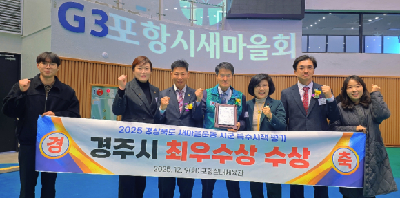 | 경주시가 지난 9일 포항실내체육관에서 열린 ‘2025 경상북도 새마을지도자대회’에서 2025년 경상북도 새마을운동 시군 특수시책 평가 ‘최우수상’을 수상했다.