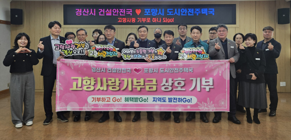 경산시가 지난 9일 경산 건설안전국 직원과 포항 도시안전주택국 직원이 700만 원의 고향사랑기부금을 상호 기부하며 연말 고향사랑기부 분위기 확산에 나섰다.