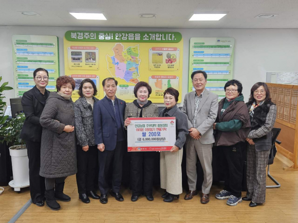 안강농협 주부대학 총동창회가 지난 12일 북경주행정복지센터를 방문해 지역 어려운 이웃의 따뜻한 겨울나기를 지원하기 위해 쌀 200포를 기부했다.