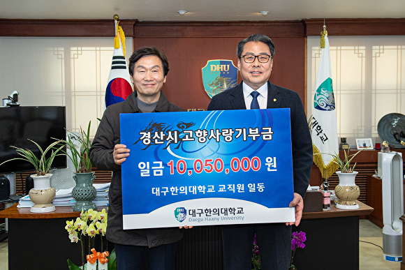 이번 기부는 대구한의대 교직원이 자발적으로 동참해 마련한 것으로, 지역 발전과 공동체 회복력 제고에 기여하겠다는 구성원 의지를 담고 있다. 전달식에는 변창훈 총장과 조현일 경산시장이 참석해 기부 취지와 향후 협력 방향을 논의했다.