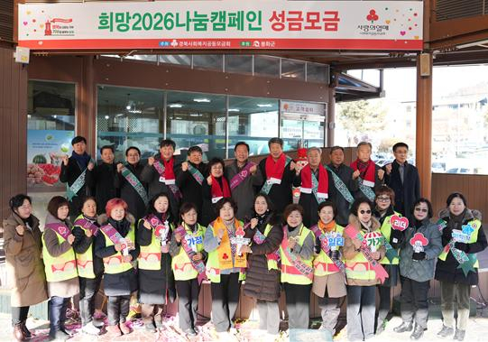 | 희망2026집중모금 나눔 캠페인 모습.<봉화군 제공> | 봉화군이 지난 12일 봉화상설시장 무대에서 희망2026 집중모금 나눔캠페인을 진행하며, 연말 이웃돕기 집중모금 활동을 시작했다. 행사에는 나눔봉사단, 여성단체협의회, 경북공동모금회 등 지역 단체와 주민 120여 명이 참여했다. 행사는 2025년 한 해 동안 추진된 성금 모금 및 배분 활동 영상을시작으로 개시 선언, 성금 전달, 성금모금 퍼포먼스, 기념촬영 순으로 이어졌다. 성금 전달식에는 봉화 아너소사이어티 회원인 권영만 대표가 1,000만 원을 기부했으며, 이 외에도 많은 지역 기부자들이 성금을 전달하기 위해 방문했다.