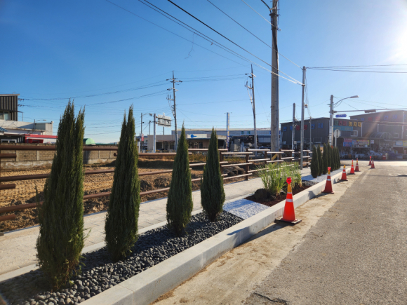또한 군은 단순한 식재에 그치지 않고 가로수 주변에 백자갈, 화산석 등 다양한 멀칭재를 활용해 시각적 효과를 높였다. 더불어 조경수 사이에 현무암 소재의 조경석을 배치해 수목과 자연스럽게 조화를 이루도록 하여 도시 미관을 한층 고급스럽고 안정감 있게 개선했다.