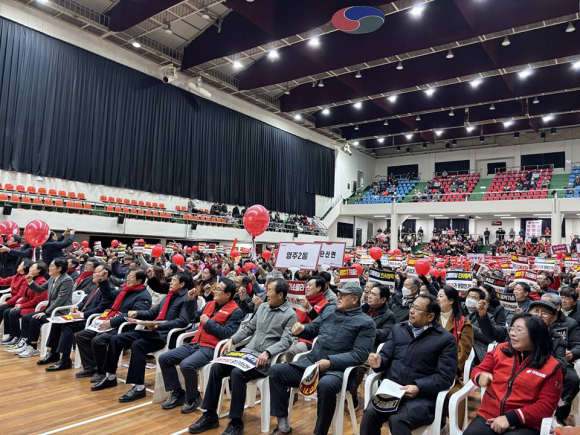 | 송년 연수 모습.<임종득의원실 제공> | 국힘 임종득 국회의원(영주·영양·봉화)이 지난 13일 봉화 군민회관에서 영주·영양·봉화 당원협의회 송년연수회를 개최했다. 행사에는 영주·영양·봉화 지역 당원이 대거 참석해 회관을 가득 메웠으며, 김정재·조지연·임이자 국회의원, 김재원 국민의힘 최고위원, 박성만 도의장, 윤철남 영양 도의원, 박창욱 도의원, 박현국 봉화군수, 오도창 영양군수 등 내빈이 함께했다. 행사에 참석한 내빈들은 차례로 인사말에 나서 최근 특검 기소로 정치적 압박을 받고 있는 임종득 의원에 대해 격려의 뜻을 전했다. 동시에 민주당의 정치보복과 사법 파괴 논란에 대해 우려를 표하며 “지금 같은 시기에는 임종득 의원처럼 흔들림 없이 중심을 잡아줄 정치인이 필요하다”고 강조했다. 김정재 국회의원은 “임종득 의원은 안보·행정·국정을 두루 경험한 준비된 정치인이며 말보다 결과로 평가받아야 할 인물”이라고 밝혔고, 조지연 국회의원은 “임 의원과 대통령실에서 같이 일했지만 매사에 꼼꼼하고 철저한 분이었다”며 “특검에서 파도파도 나오는게 없으니까 말도 안되는 기소를 하고 있다”며 “여러분이 힘을 모아 일잘하는 임종득 지켜달라”고 호소했다. 김재원 국힘 최고위원은 “검사도 해보고 변호사도 해봐서 잘 안다”며 “지난 해병대 특검에도 제가 이건 도저히 재판에 넘길 수 없으니 걱정말라고 했더니 정말 무혐의 처분을 받았다”고 말한 뒤, “이번에도 무슨 죄라도 뒤집어 씌울려고 장교 채용문제에 관여했다면서 재판에 넘긴다고 하지만 제가 볼 때에는 아무리 해봤자 무죄다”고 말해 당원의 호응을 얻었다. 뒤늦게 행사에 참석한 임이자 국회기획재정위원장은 “기획재정위원인 저도 지역을 잘 챙기지 못하는데 임종득 의원은 초선 의원이지만 지역관련 예산을 100여건의 예산을 확보하는 성실함과 완벽함 추구하는 의원이다”며 칭찬을 이어갔다.