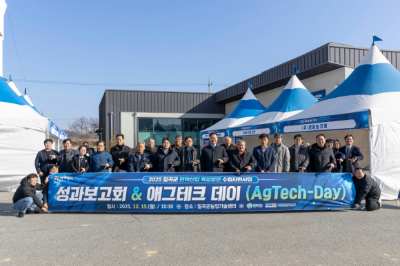 | 칠곡군이 지난 15일, 농업기술센터 청년농업인지원센터에서 칠곡군 전략산업 육성방안 수립 지원사업 성과보고회(AgTech-Day)를 개최했다. 행사는 칠곡군이 주최하고 한국전자통신연구원(ETRI) 대경권 연구본부가 주관했다.
