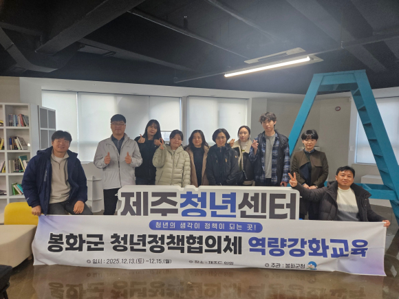 | 청년정책협의체 우수사례 견학 및 역량강화 교육 모습.<봉화군 제공> | 봉화군이 지난 13일~15일까지, 제주도 일원에서 '청년정책협의체 우수사례 견학 및 역량강화 교육'을 실시했다. 견학에는 봉화 청년정책협의체 위원 8명과 군 관계자 3명 등 총 11명이 참여했다.