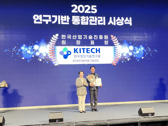 ‘연구기반 통합관리 포상’은 산업통상자원부와 한국산업기술진흥원(KIAT)이 연구기반센터의 운영 성과와 장비 관리 체계, 산업계 지원 실적 등을 종합 평가해 우수 기관에 수여하는 상이다.