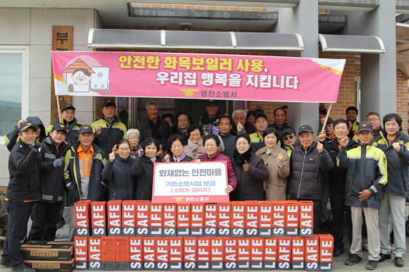 영천소방서가 지난 16일 화재 취약지역 주민들의 주거 안전을 강화하기 위하여 화산면 부계리 마을회관에서 주택용 소방시설 보급 행사를 실시했다.