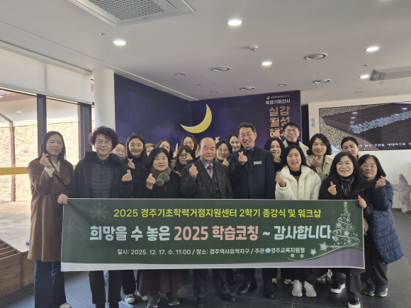 | ↑↑ 기초학력거점지원센터, 2학기 종강식 및 워크샵 후 기념촬영을 하고 있다.<경주교육지원청 제공> |