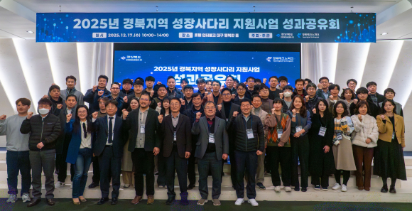경북테크노파크(원장 하인성·경북TP)가 지난 17일 대구 인터불고호텔에서 '2025년 경북지역 성장사다리 지원사업 성과공유회'를 개최했다.