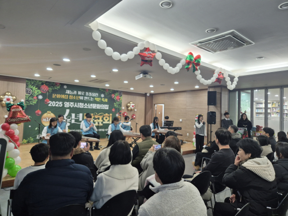| 제14회 송년발표회 모습.<영주시 제공> | 영주 청소년문화의집이 지난 20일 다목적홀에서 청소년의 뜨거운 열정과 재능을 엿볼 수 있는 ‘제14회 송년발표회’를 개최했다.