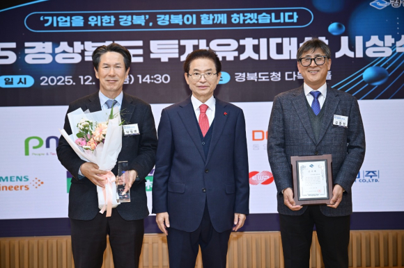 | 김천1일반산업단지에 입주한 ㈜디알젬(대표 박정병)과 ㈜대림프라콘(대표 김동수)이 지난 19일 경북 도청에서 열린 ‘2025년 경북 투자유치대상’시상식에서 우수상과 특별상을 수상했다.
