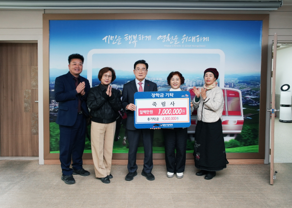 죽림사에서 100만 원의 장학금을 23일 (재)영천 장학회에 전달했다.