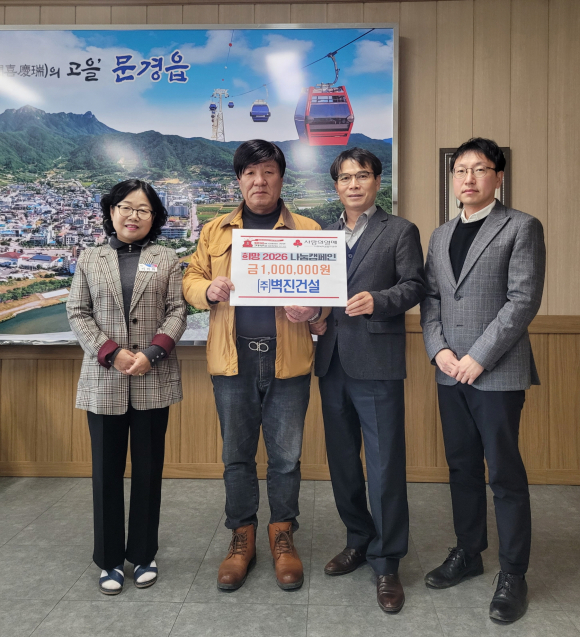 ㈜벽진건설은 불우이웃돕기 성금 100만 원을 기탁하며 나눔 실천에 힘을 보탰고, 김형수 대표는 “전문건설업체로서 지역 발전과 함께 성장해 온 만큼 어려운 이웃과 따뜻한 마음을 나누는 것이 중요하다고 생각한다”고 말했다.