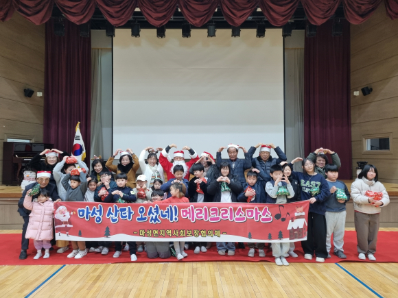 문경 마성 지역사회보장협의체가 지난 22일 위원 10여 명이 산타클로스가 되어 관내 동성초 및 마성어린이집을 방문, 38명 어린이들과 함께 즐거운 시간을 가졌다.