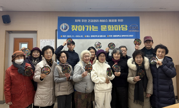 | 찾아가는 문화마당 운영 모습.<동양대 제공> | 동양대 경북RISE사업단이 지난 22일 오전 9시 30분~11시 30분까지 의성노인복지관 1층 교실에서 복지관 소속 어르신을 대상으로 '찾아가는 문화마당'프로그램을 운영했다. 프로그램은 의성노인복지관의 협조 아래 진행되었으며, 복지관은 장소를 제공하고 소속 어르신들의 참여를 적극 지원하는 등 원활한 운영을 위해 함께 힘을 보탰다. ‘찾아가는 문화마당’은 문화 활동의 기회가 상대적으로 적은 지역 어르신들을 위해 기획된 프로그램으로, 이날은 ‘썬캐쳐 만들기’ 체험 활동이 진행되었다. 총 2시간 동안 1시간씩 두 차례에 걸쳐 운영되었으며, 1차에는 11명, 2차에는 15명의 어르신이 참여해 각자의 개성과 감성을 담은 썬캐쳐를 직접 제작하며 즐거운 시간을 보냈다. 동양대 경북RISE사업단은 “지역 어르신의 문화적 욕구를 반영한 프로그램을 통해 삶의 질 향상에 기여할 수 있어 뜻깊었다”며, “2026년에도 사회적 소외계층의 문화 접근성 향상을 위해 다양한 문화활동을 지속해서 운영하고 지원할 계획”이라고 밝혔다. |