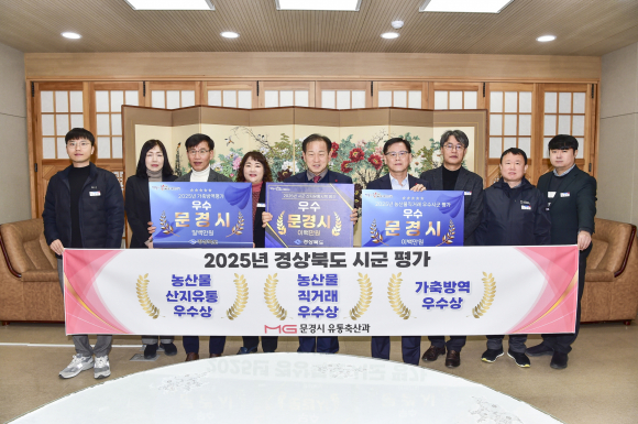 | 경북도 시군 시책평가에서 3개분야 ‘우수상’을 수상했다.<문경시 제공> | 문경 유통축산과가 경북도 주관 「2025년 시·군 시책평가」에서 농산물 산지유통시책, 농산물 직거래, 가축방역 3개 분야에서 우수상을 수상하며, 농업 행정 전반에 걸쳐 탁월한 성과를 거두고 ‘농업 행정의 강자’로서의 위상을 입증했다.