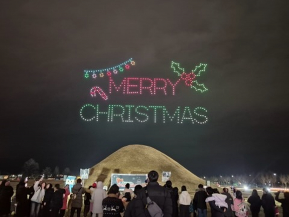 경주시가 지난 24일 황남동 고분군 일원에서 ‘브레드이발소와 함께하는 크리스마스 드론 아트쇼’를 개최했다.
