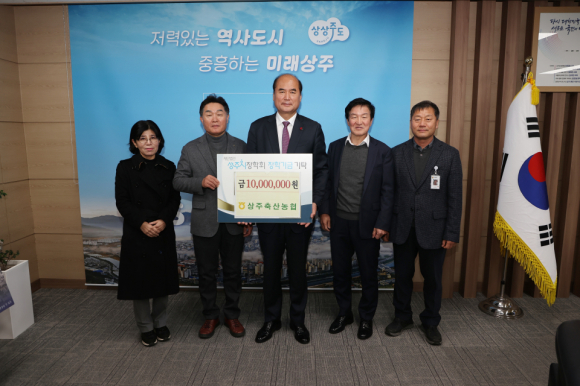 상주축협이 지난 24일 시청을 찾아 인재 육성을 위해 상주 장학회에 장학금 1,000만 원을 강영석 이사장(시장)에게 기탁했다.