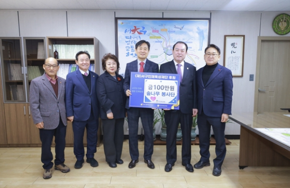 대구 서구가 솔나무봉사단이 (재)서구인재육성재단에 후원금 100만원을 기탁했다다.
