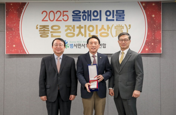 | 국회 외교통일위원장으로 경주를 지역구로 두고 있는 김석기 국회의원이 지난 11일 범시민사회단체연합이 주관한 2025년 ‘올해의 인물’ 시상식에서 ‘좋은 정치인’상을 수상했다.