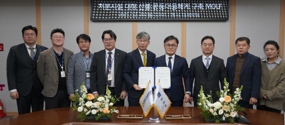 | 한국원자력환경공단(이하 공단)dl 지난 29일 경주 본사에서 경주시와 처분시설 대형 산불 공동대응체계 구축을 위한 업무협약(MOU)을 체결했다.