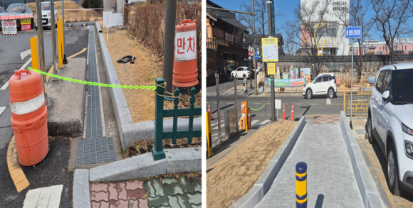 이에 따라 ▲보행로 2개소 신규 설치 ▲노후 펜스 교체 ▲차량 이동동선 도색 작업을 실시하여 보행자 안전을 확보하였다. 특히 신규 보행로 1개소에는 장애물 없는 경사로를 설치하여 교통약자도 이용할 수 있도록 보행 환경을 개선했다.