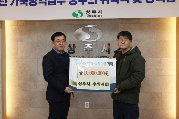 상주시가 지난 29일 시청 소회의실에서 공수의사 위촉과 함께 공수의사는 지역 인재 육성을 위해 장학금 1000만 원을 강영석 시장에게 기탁했다.