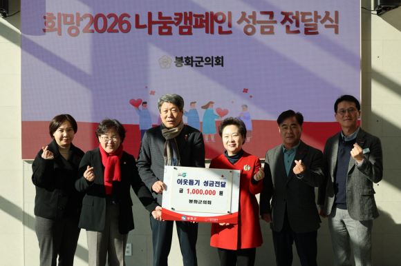 봉화 군의회가 지난 31일 의회 로비에서 연말연시를 맞아 이웃사랑 실천을 위한 ‘희망2026 나눔캠페인’ 성금을 전달했다.