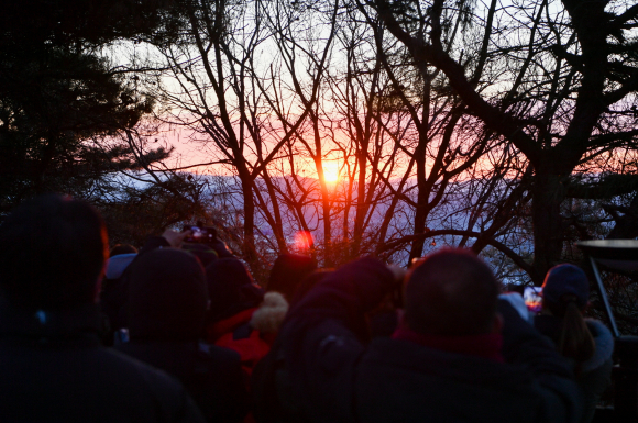 | 첫 해돋이 모습.<영주시 제공> | 영주시가 1일 철탄산 성재에서 시민 700여 명이 참석한 가운데 병오년(丙午年) 신년 해맞이 행사를 개최했다.