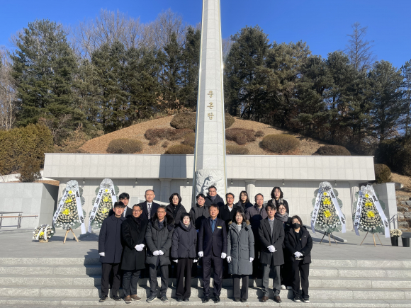 | 총혼탑 참배 모습.<영주교육지원청 제공> | 영주교육지원청이 지난 2일 휴천동에 소재 충혼탑을 방문, 호국영령에 대한 참배를 실시했다. 참배 행사는 이용택 교육장을 비롯해 교육지원과장, 행정지원과장, 장학사 및 담당 등 20명이 참석해 헌화 및 분향, 묵념 순으로 진행됐다.
