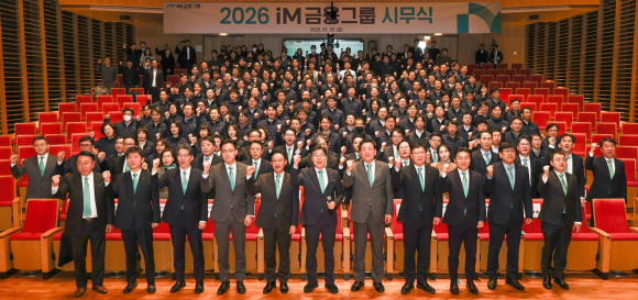 iM금융그룹이 지난 2일 대구 소재 iM뱅크 제2본점에서 황병우 회장과 계열사 대표 및 임직원이 모인 가운데 2026년 병오년(丙午年) 새해 힘찬 시작을 다짐하기 위한 시무식을 개최했다.