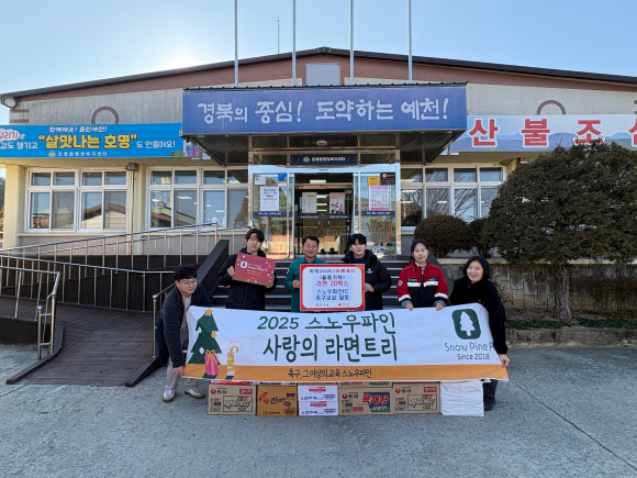 예천 스노우파인FC 축구교실 경북도청점이 지난 2일 호명읍 행정복지센터를 방문해 선수들이 직접 모은 정성으로 라면 20박스를 기탁했다. 스노우파인FC 축구교실은 매년 지속적으로 라면을 기탁해 왔다.