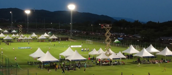 | ↑↑ 지난해 여름 경주시 알천축구장 일원에서 열린 화랑대기 국제 유소년 축구대회에서 국내외 유소년 선수들이 경기를 치르고 있다.<경주시 제공> |