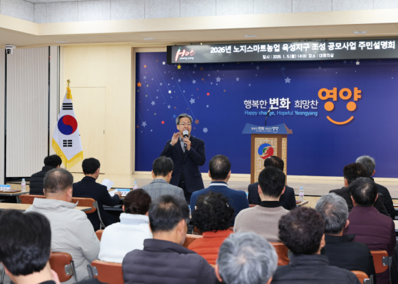 | 영양군이 지난 5일, 군청 대회의실에서 ‘2026년 노지 스마트농업 육성지구 공모사업’추진을 위한, 농업인을 대상으로 주민 설명회를 개최했다.