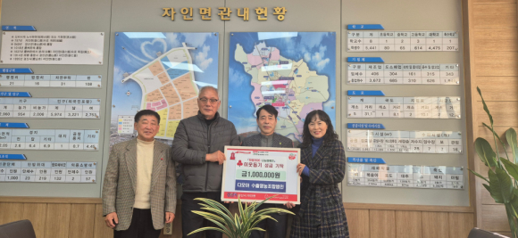 경산 농식품 수출업체인 다모아수출영농조합법인이 6일 자인 행정복지센터를 방문해 이웃돕기 성금 100만 원을 기탁했다.