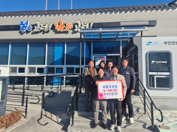 고령 개진 시례길 소재 성서산업(주)가 지난 6일, ‘희망2026 나눔캠페인’성금 100만 원을 면 사무소에 전달했다.