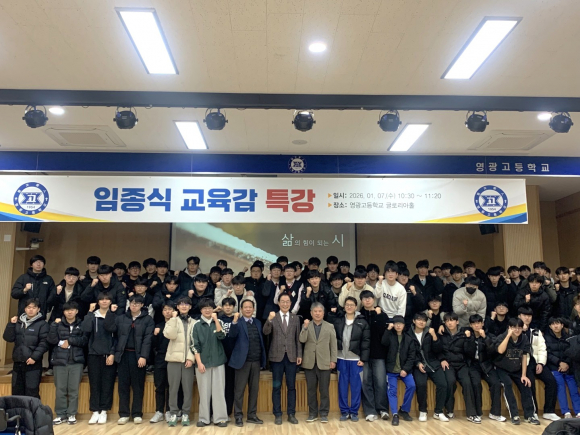 임종식 경북 교육감이 7일 영주 영광고를 방문해 3학년 학생을 대상으로 특강을 펼쳤다. 특강은 ‘행복’을 주제로, 3학년 전 학급 학생들이 참석한 가운데 따뜻하고 진솔한 분위기 속에서 이뤄졌다.