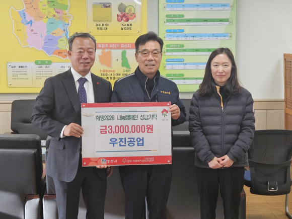 경주 안강읍 소재 우진공업이 지난 8일 북경주행정복지센터를 방문, 어려운 이웃을 위한 성금 300만 원을 기탁했다.