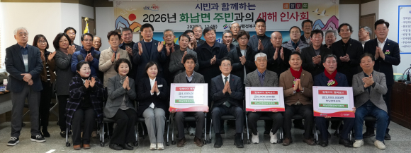 화남면에 지난 12일 열린 주민과의 새해 인사회에서 이장협의회, 주민자치위원회, 목요회가 관내 취약계층을 돕기 위해 각 100만원씩 총 300만원의 성금을 기탁했다.