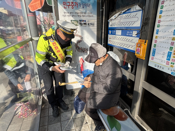 | 영천경찰서가 겨울철 어르신 교통사고 예방을 위해 오는 2월 28일까지 찾아가는 교통안전 홍보활동을 강화한다.