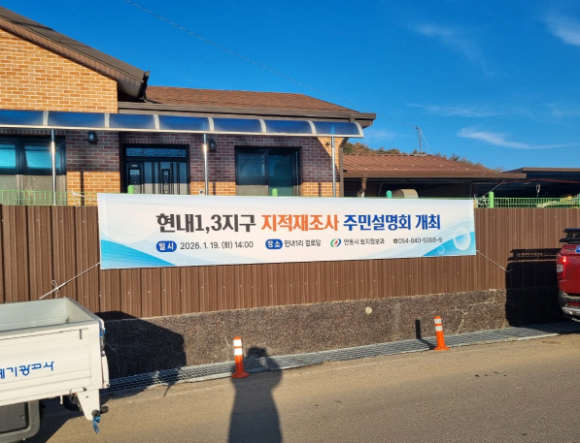 | 안동시가 2026년도 지적재조사사업(남선 현내1지구 외 3개소)에 대해 토지소유자 및 이해관계인을 대상으로 주민설명회를 개최한다.