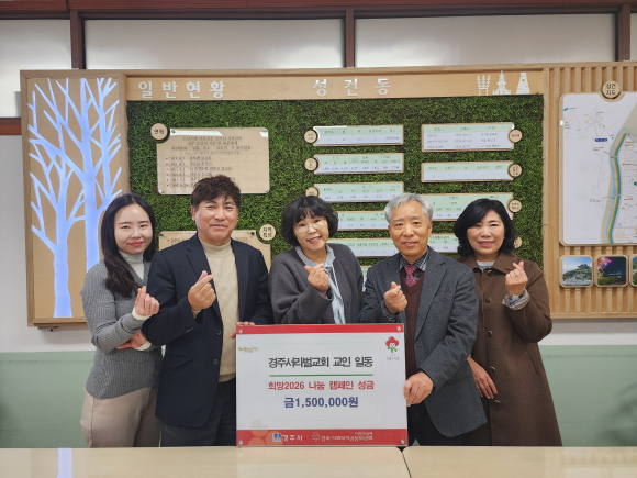 경주서라벌교회가 지난 13일 성건동 행정복지센터를 방문해 ‘희망2026 나눔캠페인’ 성금 150만 원을 기탁했다.