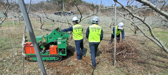 | ↑↑ 영농 부산물 파쇄지원단 활약 모습.<영덕군 제공> |