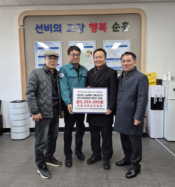 대한예수교 장로회 순흥교회가 지난 15일, 올해도 면 행정복지센터에 영주사랑상품권 225만 원을 기탁했다.