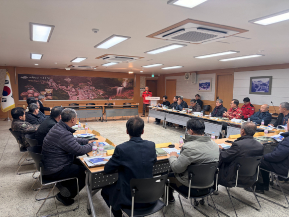 | ↑↑ 소나무재선충병 차단을 위해 읍·면 이장출무회의를 중심으로 마을 홍보활동을 강화하고 있다.<울진군 제공> |
