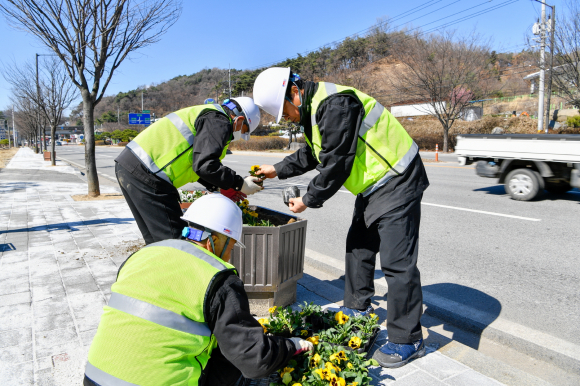 공공일자리사업 참여자들이 꽃길조성을 하고 있다.<영주시 제공>