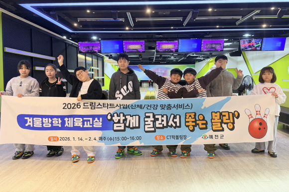 예천군이 지난 14일~오는 2월 4일까지 매주 수요일 드림스타트 아동 10명을 대상으로 볼링을 통한 겨울방학 체육교실 프로그램을 진행한다.
